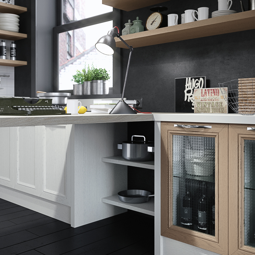 Magistra’s kitchen is imbued with a modern and metropolitan touch, the kitchen is timeless and designed for elegance that lasts through time. A combination of memory of the past period, but it can be placed in different environments. It is an extremely pleasant kitchen for users, with strong material prints and layouts of heterogeneous materials such as stainless steel plates, silver decorated frames, white ash, clay, titanium, green finishes, handles or concave c-channels, even the kitchen door so made of durable solid wood – oak and ash, which provides the user with quality durability and long life of the kitchen.